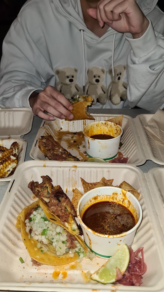 Pair your meal with a refreshing Jarritos Mexican Soda Lime, which adds a zesty, tangy kick to your dining experience. It’s the perfect way to wash down the bold flavors of the food while adding a traditional touch to your meal.
